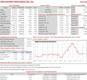- El “optimismo” sobre el devenir de las negociaciones comerciales entre la Unión Europea (UE) y EEUU, optimismo que no sabemos si realmente está fundamentado o no, permitió AYER a los principales índices bursátiles europeos cerrar la sesión con fuertes alzas, con el Eurostoxx, el Dax alemán y el FTSE Mib italiano marcando nuevos máximos anuales. Los inversores parece que confían y, sobre todo, dan por bueno, un acuerdo en que el la UE aceptará unos aranceles generalizados del 10% a sus exportaciones a EEUU, además de algunas tarifas algo superiores, que afectarán a una serie de sectores concretos, como son el del acero, el del automóvil, el de alimentación y, probablemente también, al farmacéutico.