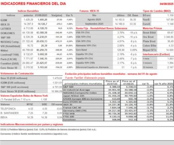 - Los inversores contarán también con alguna referencia de relevancia en la agenda macroeconómica, como la publicación el martes de las lecturas finales de los índices de actividad del sector servicios, PMI servicios, en la Eurozona, sus principales economías (Alemania, Francia, Italia y España), Reino Unido y, ya por la tarde, en EEUU (PMI e ISM). Además, se publicarán HOY los pedidos de fábrica de EEUU de junio, el martes la producción industrial de Francia y de España, ambas del mes de junio, el IPP de la Eurozona del mismo mes, y la balanza comercial de EEUU de junio. El miércoles se emitirán los pedidos de fábrica de Alemania de junio, la producción industrial de Italia de junio, y las ventas minoristas de la Eurozona, del mismo mes. Por su parte, el jueves los inversores contarán con la producción industrial de Alemania y las balanzas comerciales de Alemania y Francia, todo del mes de junio. En EEUU se publicarán los datos de solicitudes de desempleo semanales y los inventarios mayoristas. Finalmente, el viernes se publicará la tasa de desempleo de Francia del 2T2025.