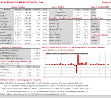 - En Wall Street la sesión de AYER fue de transición, con los inversores a la espera de conocer los resultados de la multinacional NVIDIA (NVDA-US), la compañía con mayor capitalización bursátil del mundo, que mantiene un peso relativo en el S&P 500 del 7%, de ahí su relevancia. Así, y durante toda la sesión, los principales índices bursátiles de este mercado se movieron en un estrecho intervalo de precios, para terminar el día con ligeros avances, lo que permitió al S&P 500 marcar un nuevo máximo histórico, el decimonoveno de 2025.