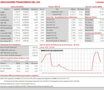 - En una sesión que estuvo marcada por el incremento de las tensiones geopolíticas en Europa, tras el derribo por parte de las fuerzas aéreas de la OTAN de varios drones rusos en el espacio aéreo de Polonia, los principales índices bursátiles europeos cerraron AYER de forma mixta, lejos de sus niveles más elevados del día. De esta tendencia generalizada se desmarcó AYER el Ibex-35, que terminó muy cerca de sus niveles más altos de la jornada, impulsado, principalmente, por el fuerte repunte de las acciones de Inditex (ITX), el valor de mayor capitalización bursátil de la bolsa española.