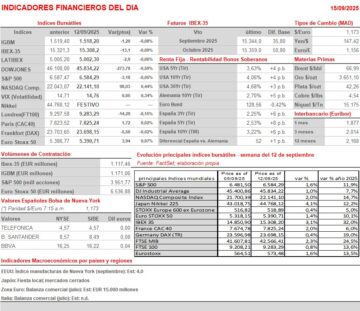• La agenda macroeconómica de la semana presenta algunas otras citas de interés, como la publicación MAÑANA en EEUU de las ventas minoristas y de la producción industrial de agosto y el miércoles de las lecturas finales de agosto de la inflación en la Eurozona y en el Reino Unido.