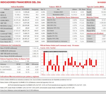 - HOY, y en un día en el que la agenda macroeconómica es bastante liviana -destaca la publicación del Producto Interior Bruto (PIB) de agosto en el Reino Unido-, serán nuevamente el conflicto comercial entre EEUU y China y los resultados trimestrales los que centren la atención de los inversores, sin olvidar, por supuesto, la crisis política francesa, ya que HOY, el primer ministro Lecornu se enfrenta a sendas mociones de censura, convocadas respectivamente por los partidos de extrema derecha y extrema izquierda. Para empezar, esperamos que HOY los principales índices bursátiles europeos abran a la baja, siendo factible que se observen algunas tomas de beneficios en los sectores que, como el del lujo, AYER subieron con fuerza.