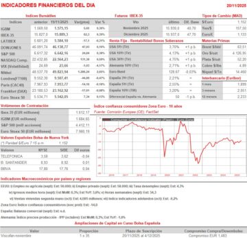 - En Wall Street los índices, tras algunos titubeos, sí fueron capaces AYER de cerrar la jornada con ganancias, aunque lejos de sus niveles más altos del día, interrumpiendo de esta forma una racha de cuatro sesiones de caídas, en las que habían sufrido los mayores recortes desde el pasado mes de abril, en plena crisis de “los aranceles recíprocos” de Trump. La publicación de las actas de la reunión de octubre del Comité Federal de Mercado Abierto (FOMC) de la Reserva Federal (Fed) dejó algo “fríos” a los inversores, ya que las mismas mostraron a un consejo dividido, en el que parecían ser mayoría los miembros que prefieren esperar y no bajar las tasas oficiales nuevamente en el mes de diciembre.
