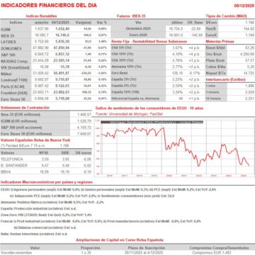 - Ferrovial (FER): descuenta dividendo ordinario a cuenta de 2025 por importe bruto de EUR 0,077 por acción; paga el día 22 de diciembre