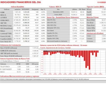 - En Wall Street toda la atención de los inversores durante las primeras horas de la jornada la centró la reunión del FOMC, lo que mantuvo a los principales índices sin grandes cambios, ligeramente en negativo. Finalmente, y tal y como se esperaba, la Fed optó por volver a bajar sus tasas de interés de referencia en 25 puntos básicos, hasta el intervalo del 3,5% – 3,75%. Además, la Fed anunció que había terminado el proceso de reducción de su balance, algo que también estaba descontado por los mercados. En este sentido, la Fed también anunció que a partir de ahora comenzará a comprar bonos del Tesoro con vencimientos a corto plazo para incrementar sus reservas, algo que parece sí que gustó a los inversores. Señalar, además, que la Fed revisó al alza sus expectativas de crecimiento económico para 2025 y 2026 y rebajó ligeramente las de inflación, mientras que mantenía sin cambios su proyección para la tasa de desempleo para este periodo. El diagrama de puntos, donde los miembros del FOMC dibujan sus expectativas para los tipos de interés oficiales, se mantuvo inalterable, mostrando un único recorte de tipos de un cuarto de punto en 2026. La reacción de los inversores a lo “hecho y dicho” por la Fed fue positiva, con los índices de Wall Street girándose al alza, para cerrar el día todos ellos con ganancias.