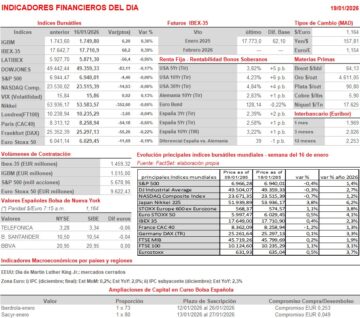 • Pero, además de la tensión política y comercial entre dos socios tradicionales, algo que entendemos debilita la confianza de los inversores a escala global, los inversores deberán afrontar en los próximos días la publicación de una serie de datos macroeconómicos de gran relevancia, comenzando HOY con la publicación en la Eurozona de la lectura final del IPC de diciembre. Además el miércoles se publicará el en el Reino Unido la inflación del mismo mes, mientras que el jueves, y en EEUU, se dará a conocer la lectura de noviembre del índice de precios del consumo personal, el PCE, la variable de precios más seguida por la Reserva Federal (Fed). Finalmente, el viernes la consultora S&P Global dará a conocer en la Eurozona, sus principales economías: Alemania y Francia, el Reino Unido y EEUU las lecturas preliminares de enero de sus índices de actividad sectoriales.