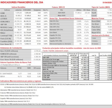 - HOY en la agenda macroeconómica del día destaca la publicación en la Eurozona, sus principales economías, el Reino Unido y EEUU de los índices adelantados de actividad del sector manufacturero del mes de marzo, los PMIs manufactureros que elabora S&P Global y el ISM manufacturero estadounidense, que publica the Institute for Supply Management (ISM). No obstante, la atención de los inversores seguirá centrada en las noticias que sobre potenciales avances en las negociaciones de paz en Oriente Medio vayan surgiendo. Así, HOY todas las miradas estarán puestas en el discurso a la nación que dará está noche Trump sobre el conflicto con Irán. Para empezar, esperamos que HOY las bolsas europeas abran claramente al alza, siguiendo de esta forma la estela dejada AYER por Wall Street y esta madrugada por las principales bolsas asiáticas, cuyos índices han terminado la jornada con importantes avances.