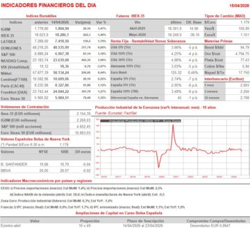 - Los principales índices bursátiles europeos cerraron AYER con fuertes alzas, muy cerca de sus niveles más elevados del día. Detrás de este buen comportamiento de los activos de riesgo de la región estuvo la nueva caída del precio del petróleo, consecuencia de dos factores principalmente: i) el hecho de que a pesar de la ruptura de las negociaciones de paz entre EEUU e Irán el pasado fin de semana y del posterior bloqueo del estrecho de Ormuz por la Armanda estadounidense, el alto el fuego temporal -dos semanas- se haya mantenido, y ii) las declaraciones por ambas partes de que es muy factible que en cuestión de días se retomen las negociaciones de paz que, probablemente, se volverán a llevar a cabo en Islamabad (Pakistán). Por sectores, en las bolsas europeas AYER fueron los valores de media, los de ocio y turismo, liderados por las aerolíneas, los bancos, los de materiales de construcción y los tecnológicos los que lideraron las alzas, mientras que, en sentido contrario, fueron los valores del sector de la energía los que peor se comportaron, cerrando todas las acciones de las compañías petroleras con significativos descensos.