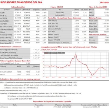 - En Wall Street la sesión terminó por ser de transición, con la reunión del Comité Federal de Mercado Abierto (FOMC) de la Fed teniendo finalmente un impacto casi nulo en esta bolsa. Así, y tal y como se esperaba, la Fed mantuvo sus tipos de interés sin cambios, en el intervalo del 3,5% al 3,75%, aunque dos de los miembros del comité, los más cercanos a Trump, apoyaron un nuevo recorte de 25 puntos básicos. Así, y a la espera de conocer los resultados que tras el cierre del mercado iban a dar a conocer varias importantes compañías, los inversores optaron por tomarse la sesión con tranquilidad, lo que llevó a sus principales índices a cerrar prácticamente planos, eso sí, después de que el S&P 500 llegara a superar por momentos el nivel de los 7.000 puntos. Tras el cierre de Wall Street, Tesla (TSLA-US), Meta Platforms (META-US) y Microsoft (MSFT-US), tres de los integrantes del grupo de los “Siete Magníficos”, dieron a conocer sus cifras trimestrales, con las acciones de las dos primeras reaccionando muy positivamente en operaciones fuera de hora y las de la tercera cayendo con fuerza, al no alcanzar el crecimiento de su negocio en la nube las expectativas más agresivas manejadas por los inversores, en otro claro ejemplo de “listón elevado selectivo”.