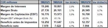 BBVA presentó ayer sus resultados correspondientes a los nueve primeros meses del ejercicio (9M2025), de los que destacamos los siguientes aspectos: