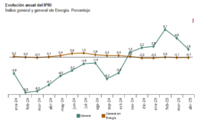 La tasa de variación interanual del IPP general sin los precios de la energía se mantuvo en el -0,1% en abril y se situó 2,0 puntos por debajo de la del IPP general.
