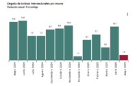 Según datos de la Estadística de Movimientos Turísticos en Fronteras (FRONTUR), dada a conocer por el Instituto Nacional de Estadística (INE), España recibió en mayo 9,4 millones de turistas internacionales, un 1,5% más que en el mismo mes de 2024. Reino Unido fue el principal país de residencia, con casi 2,1 millones de turistas y un aumento del 7,3% respecto a mayo de 2024. De Francia llegaron 1,2 millones (un 6,7% menos) y de Alemania 1,2 millones (un 6,1% menos).