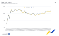 En tasa interanual las ventas minoristas repuntaron el 2,3% en la Eurozona en el mes de febrero (1,5% en enero). Por tipo de productos, las ventas de alimentos, bebidas y tabaco subieron el 1,9%; las de productos no alimentarios (excepto carburante para automoción) el 2,5%; y las de carburante para automoción en establecimientos especializados el 0,7%.