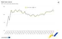 En tasa interanual las ventas minoristas de la Eurozona, también según cifras ajustadas estacionalmente, repuntaron el 1,8% en el mes de mayo (2,7% en abril), algo por encima del 1,3% que esperaban los analistas. En mayo y en tasa interanual las ventas de alimentos, bebidas y tabaco aumentaron el 0,5%; las de los productos no alimentarios (excepto carburante para automoción) el 2,4%; y las de carburante para automoción en establecimientos especializados el 2,8%.